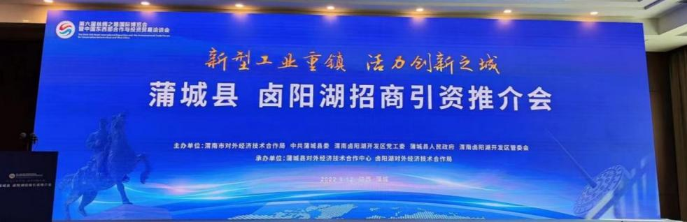 8月12日,蒲城县、卤阳湖招商引资推介会在蒲城国际酒店隆重举行。渭南市政府副秘书长王兴华,县委书记、卤阳湖开发区党工委书记张毅峰,县人大常委会主任李红伟,县长薛斌,县政协主席钟磊等市县领导出席会议。会议由县委常委、常务副县长陈改萍主持。陕西林业产业集团总经理刘志明,副总经理王智明,副总经理袁方、财务总监邵斌应邀参会。